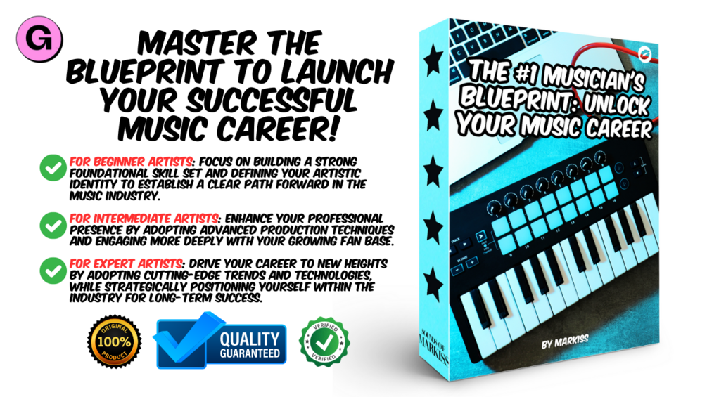 Dive into the ultimate resource for aspiring musicians with 'The #1 Musician's Blueprint - Unlock Your Music Career.' This comprehensive guide is meticulously designed to provide step-by-step instructions on navigating the complex music industry. From crafting your first song to building a sustainable career, this blueprint covers all the essential areas. Learn how to develop your unique sound, effectively promote your music using modern marketing techniques, and manage your business affairs with professionalism.