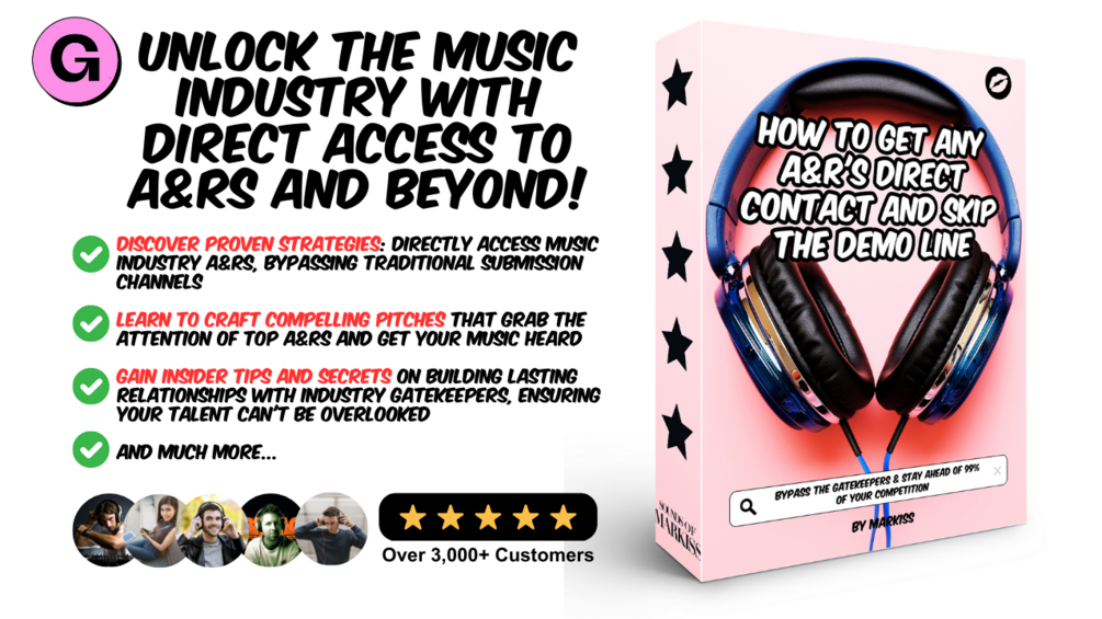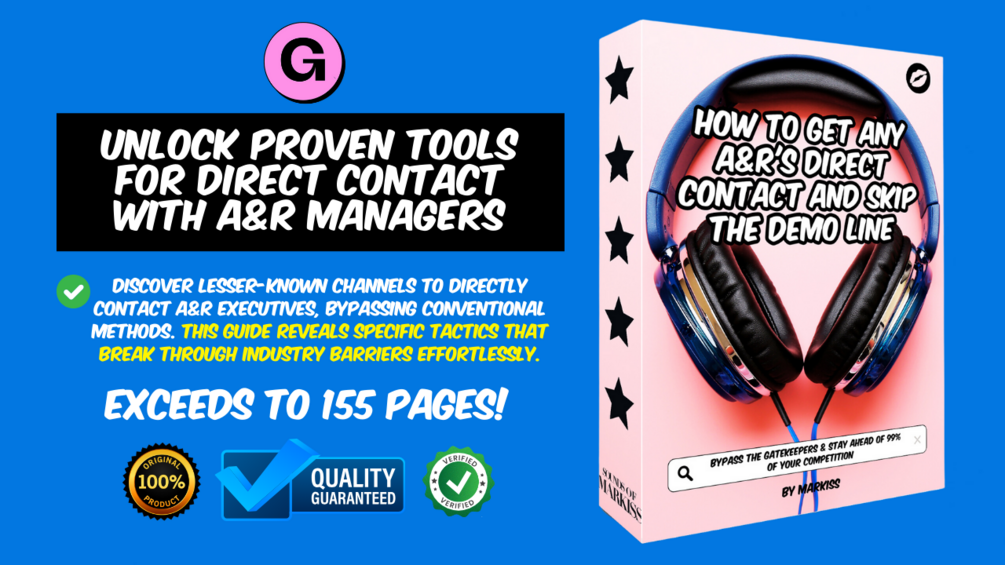 For just $224.99, this comprehensive eBook course provides a detailed, step-by-step guide illustrating the precise methods I have employed to skip the demo line and contact A&R managers directly. It includes an in-depth exploration of the PROVEN strategies I have implemented and rigorously tested, ensuring access to the same successful techniques.